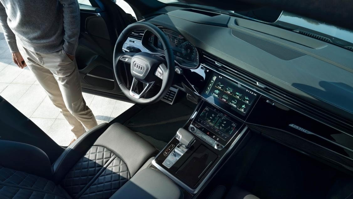 奥迪Q8的内饰为浓郁的豪华风格,用料高级,做工精致。还增加了金属换挡拨片,黑色装饰使车内整体的安全性和豪华度有所提升,实体按钮及手柄,将整车的时尚动感发挥到极致。奥迪Q8的内饰设计布局风格到位,而且豪华与运动的特性也在内饰继承下来。奥迪Q8配备中控大屏、多功能方向盘、大屏导航、影音娱乐系统等,为驾乘者带来精准而便捷的操控体验。车内标准的尺寸,营造超大的储物空间,舒适真皮座椅提高了产品性能,前后两区空调打造最适宜的内饰温度,前排记忆电动座椅提升了智能感觉,整体内饰窠舒适、温馨,给用户带来“家”一般的归属感。奥迪Q8后座椅还标配了isofix儿童座椅固定装置。所有约束防护系统均由1个电子中心安全系统控制,它监测碰撞的类型和严重程度,并相应启动最有效的防护装置。前置安全气囊采用两级气体发生器,能依据碰撞的严重程度改变气囊充气程度。