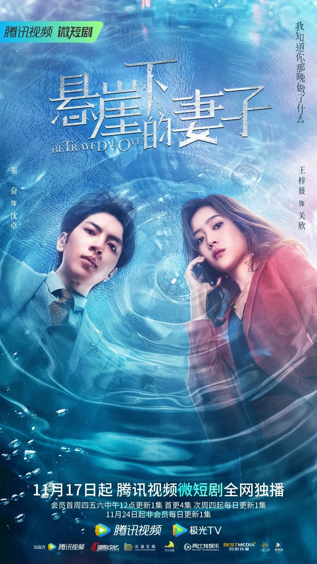 今天,腾讯视频微短剧《悬崖下的妻子》开播,故事中的女主角关欣 (王梓薇 饰) 遭遇了丈夫沈卓 (秦奋 饰) 意想不到的种种背叛。 是懦弱原谅,还是奋起反击,关欣会怎么选?