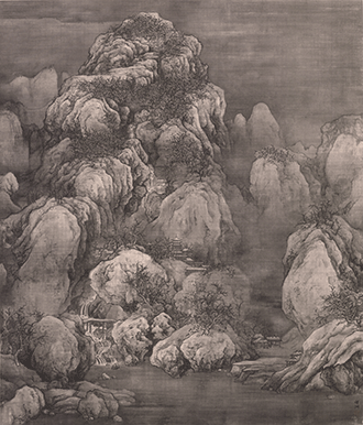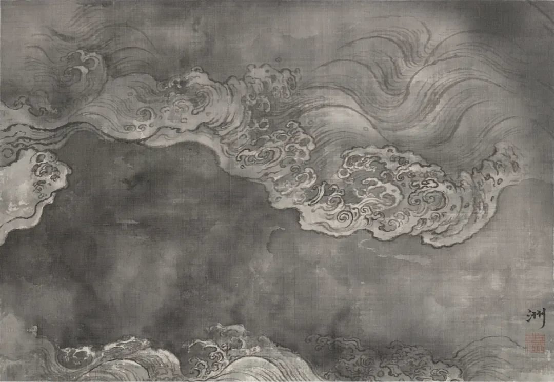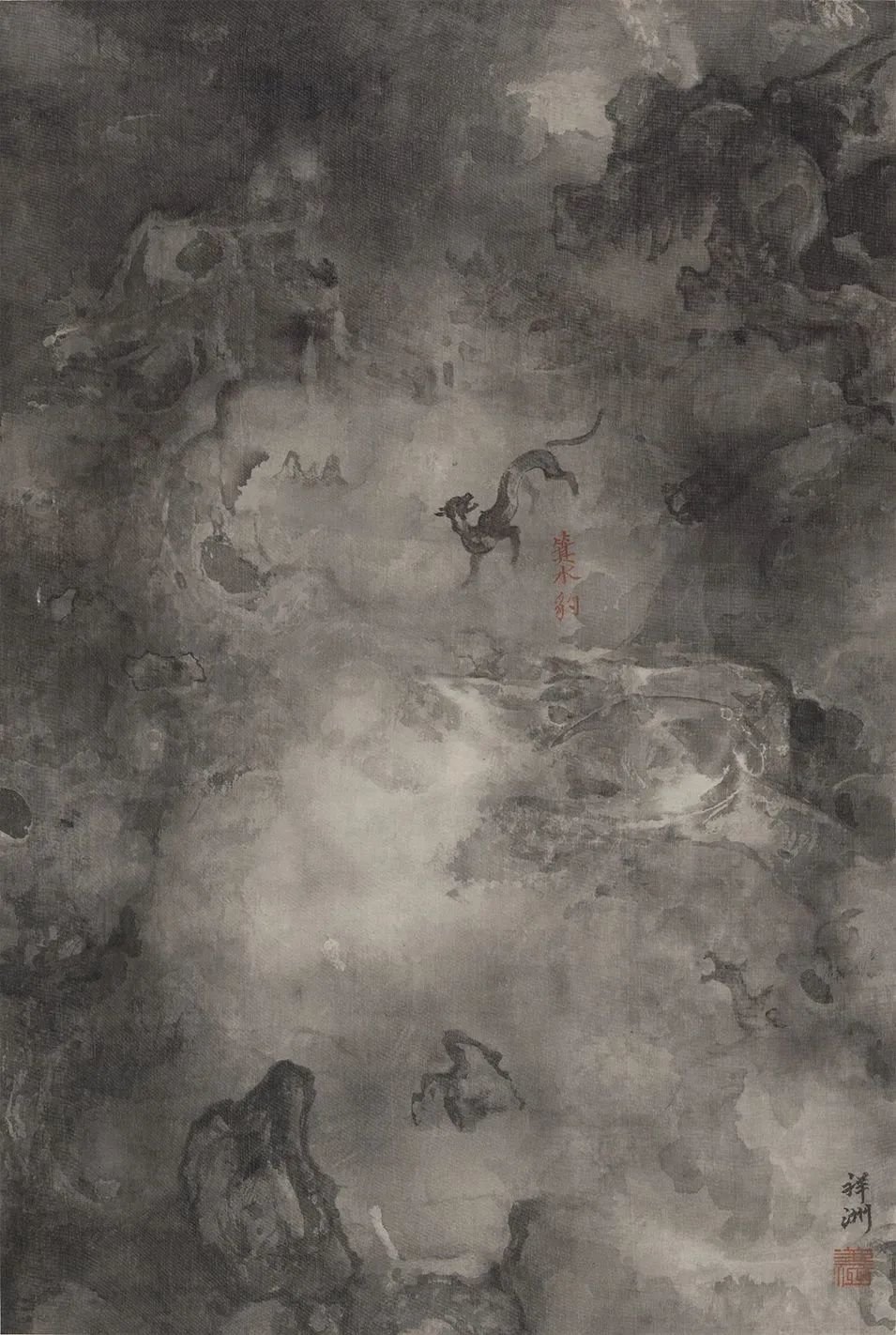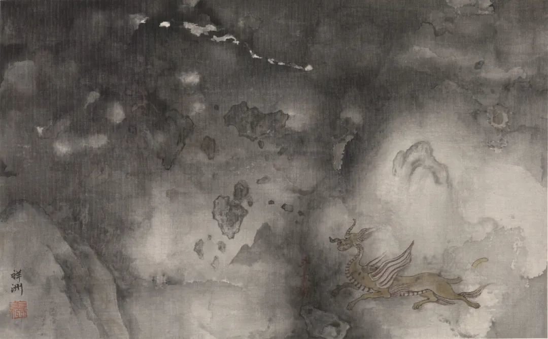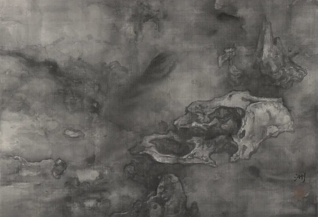 作为视觉艺术,一切深邃的思考和创造的野心,都要以视觉传达为基础。泰祥洲有五年古画修复的经验,这门技艺要求心无旁骛地钻研每个时代作品的物质材料和具体技法。在这个过程中,泰祥洲格外关注宋代那些在生绢上完成的山水作品,并掌握了通过加工处理改变绢的局部生熟程度的技巧。在泰祥洲看来,这种技巧是宋代山水画营造画面空气感的关键,那些阴晴明晦的背景空间并非是因为流传久远而留下的自然痕迹,而是宋人对于空气的表达。以生绢的渗化无迹表现气的流动,然后通过局部胶矾的覆盖让绢变熟,进一步具体刻画山石的边缘和细节,通过这种方法,泰祥洲营造出由石、水和气构成的混沌宇宙。