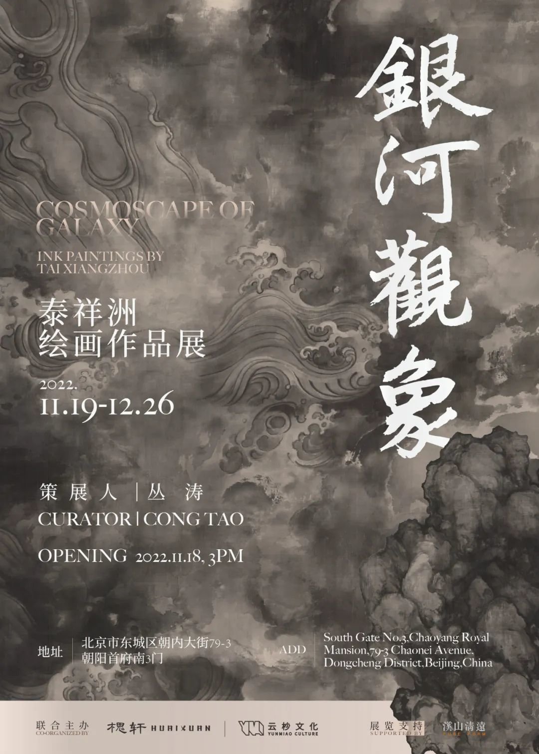 山水画连接着中国思想与哲学的传统,九州分野对应着四方星宿,山川形胜蕴含着道法玄机。探寻山水画图式与宇宙观的内在关联,是泰祥洲艺术创作的思想基石。展览展出的二十余件/组作品,包括“银河观象”、“天象”、“黄钟大吕”、“青铜礼器”、“文人赏石”等系列。全面呈现了泰祥洲近年来对于不同山水母题的深入研究,及其绘画风格的演进脉络。
