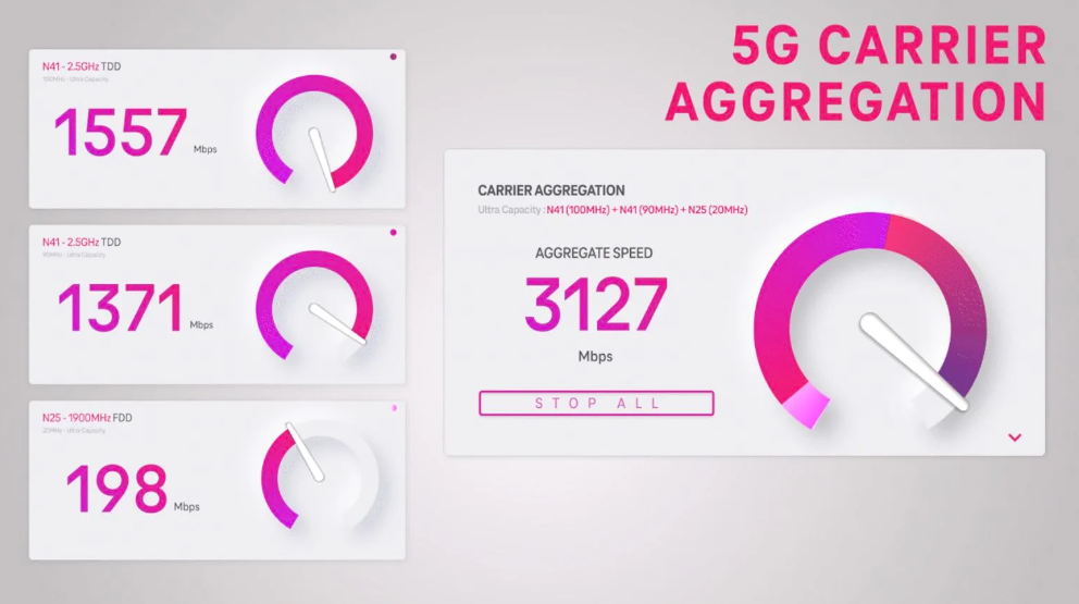 IT之家 11 月 19 日消息,在去年夏天,美国运营商 T-Mobile 发布了生产网络测试的结果,显示了 5G 独立(5G SA)与载波聚合(NR CA)相结合时,可以提供高达 3Gbps 速度。现在,该运营商已经正式推出“独立 Ultra Capacity 5G”网络服务。