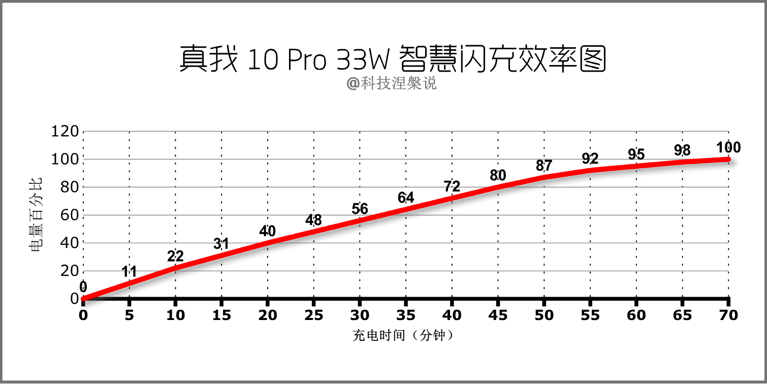 充电方面,真我10 Pro支持33W的智慧闪充,和以往一样,这个33W智慧闪充的调度很激进,26分钟就能充满50%。我自己实测10分钟可以充满22%,30分钟充满58%,完全充满需要70分钟。