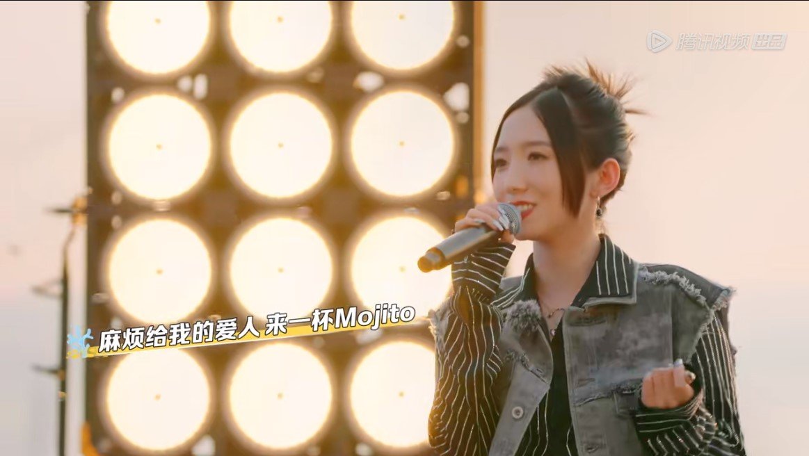 在桃花坞海边音乐节的舞台,孟美岐放弃了自己擅长的唱跳,选择立麦安静唱一首随性摇摆的《Mojito》。