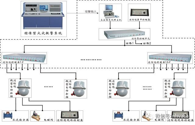 手动状态:当前端探测设备报警后,主机发出报警信号,消防值班人员通过强制切换的彩色画面再次确认火灾发生后,通过操作软手操或集中手操盘驱动自动消防炮瞄准着火点,开启电磁阀和消防泵进行灭火。