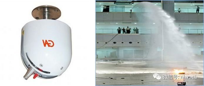 当建筑发生火灾,火点温度达到喷头爆破温度时,喷头爆破出水灭火,同时系统自动启动。