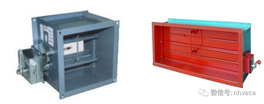 排烟防火阀:安装在排烟系统管道上.常闭,火灾时,烟(温)感探头出火灾信号,控制中心接通电源,阀门迅速打开排烟,280℃时,阀门自动关闭。