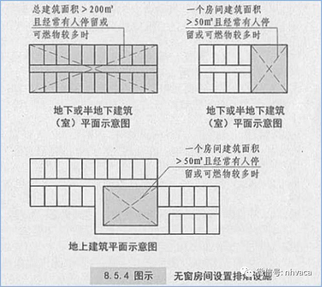 地下或半地下建筑(室)、地上建筑内的无窗房间,当总建筑面积大于200m2或一个房间建筑面积大于50m2,且经常有人停留或可燃物较多时,应设置排烟设施。
