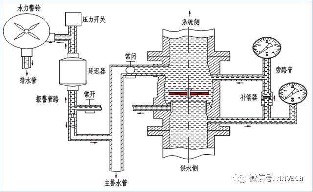 延迟器:一个罐式容器,安装于报警阀与水力警铃(或压力开关)之间,延迟器入口前安装过滤器。