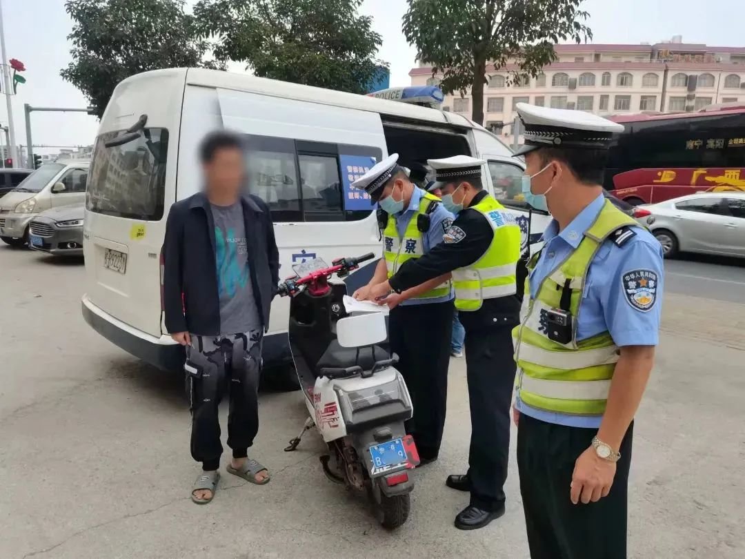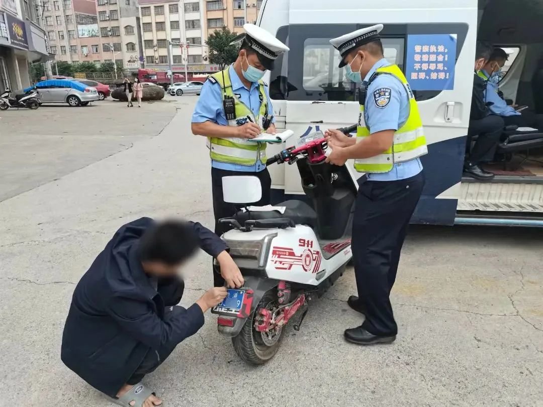 问及覃某是否有摩托车驾驶证时,覃某说以为自己是电动车就没考证。最终,覃某因无证驾驶、未按规定使用车辆号牌、不佩戴安全头盔等交通违法被交警现场处罚。