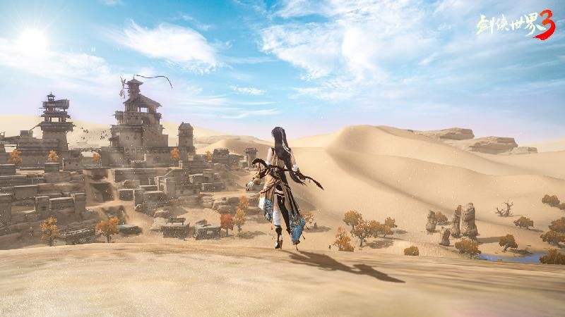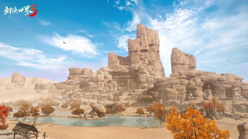 A:龙门荒漠是以中国著名景点“龙门石窟”以及周边地貌为基础风格设计,结合了武侠中的经典元素“龙门客栈”所创造的全新地图。另外,像千佛窟、绿洲等大漠景观,借助前沿3D引擎,也在游戏内得到了还原。这次,龙门荒漠作为经典的大漠景观加入《剑侠世界3》的地图版图,进一步丰富了游戏风景。可以说,玩家在《剑侠世界3》中,足不出户就能看遍天下各色风景。