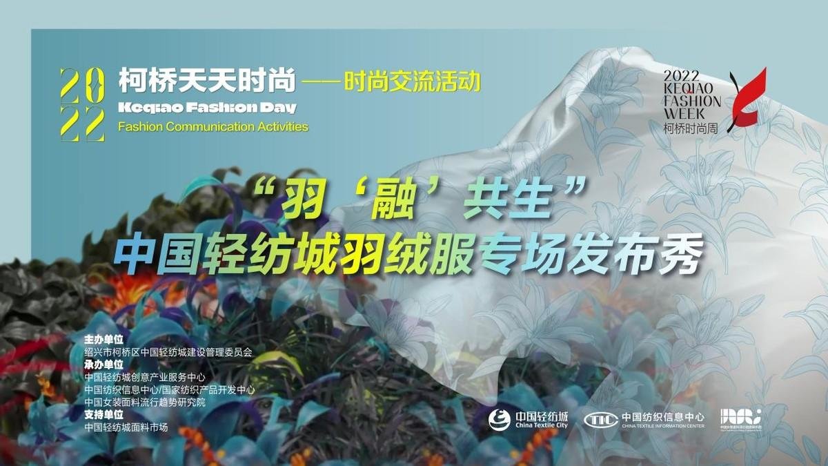 11月17日,2022柯桥时尚周(秋季)期间,“柯桥天天时尚——时尚交流活动”的专项活动之一——“羽‘融’共生”中国轻纺城羽绒服专场发布秀在浙江绍兴柯桥中国轻纺城服装服饰(辅料)市场举办。发布秀动态展示了来自中国轻纺城面料市场的佳诚纺织、绍兴聚尚纺织品有限公司、绍兴柯桥盛世天宇商贸有限公司、亚昊纺织、绍兴市柯桥区羽着服装设计工作室等五家商户企业的四十余套羽绒服装新品,在寒意渐袭的初冬,带来了一场温暖的羽绒之旅。