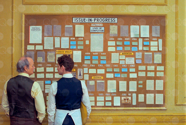 《法兰西特派》标志着这位堪称当今具有特色的导演的延续之作,即便与《布达佩斯大饭店》相比,就单从基调来说,它们是最为接近的一类,显然这将会是安德森最紧凑、结构最复杂的电影。就单单凭一个定格画面,你就知道这是韦斯·安德森的视角,以及伴随他而来的、所有令人愉悦的矛盾。