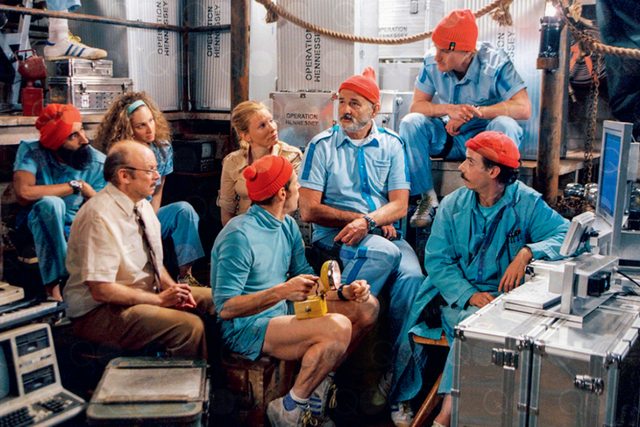 他电影中角色的穿着与其所处环境的装潢有着极高辨识度,从中也能看出艺术指导、服装设计与情节转折、背景故事的密不可分。其实只要回想一下,《水中生活》的船员是如何以略微不同的角度佩戴猩红色毛线帽的,你就能明白了。