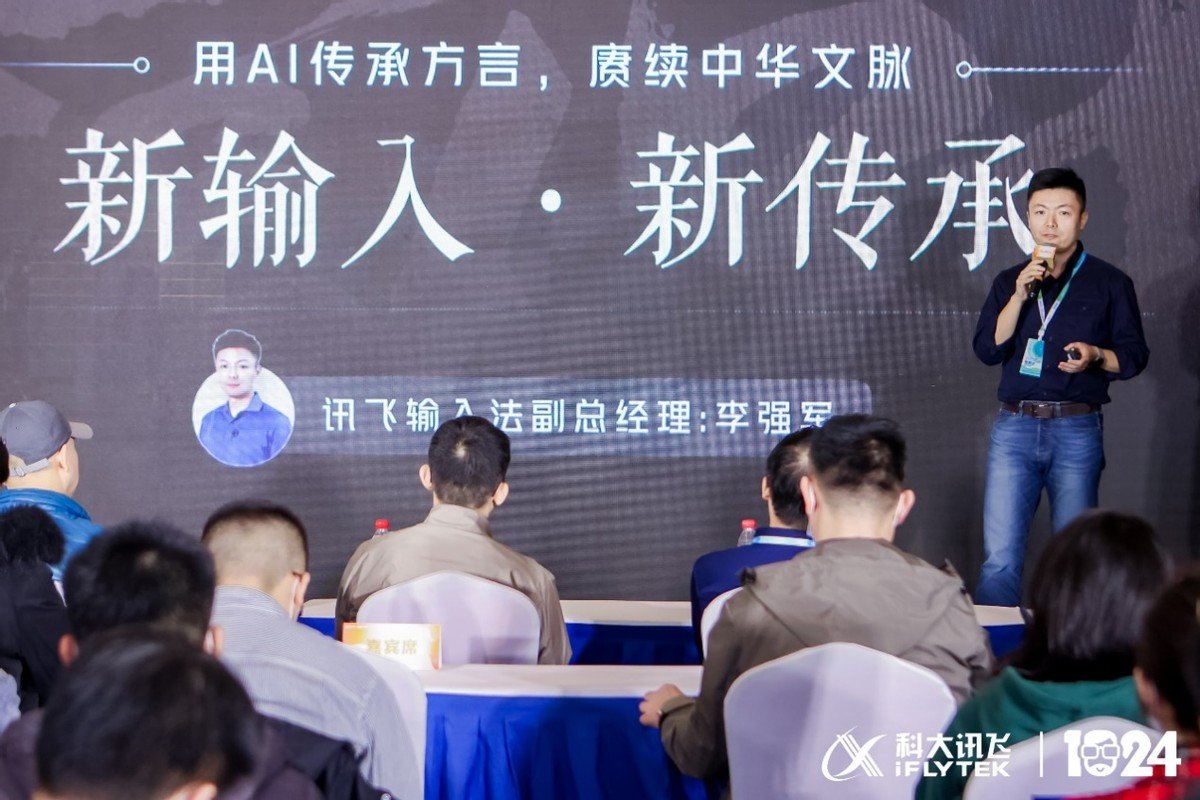来到论坛的下半场,讯飞输入法副总经理李强军发表《新输入·新传承》的演讲,讲述讯飞输入法以AI新输入,助力方言文化新传承的故事。