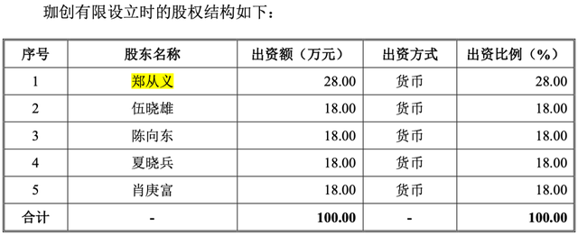 2011年4月,郑从义联合肖庚富、夏晓兵、陈向东、伍晓雄共同以货币出资设立珈创生物,设立时注册资本为100万元。