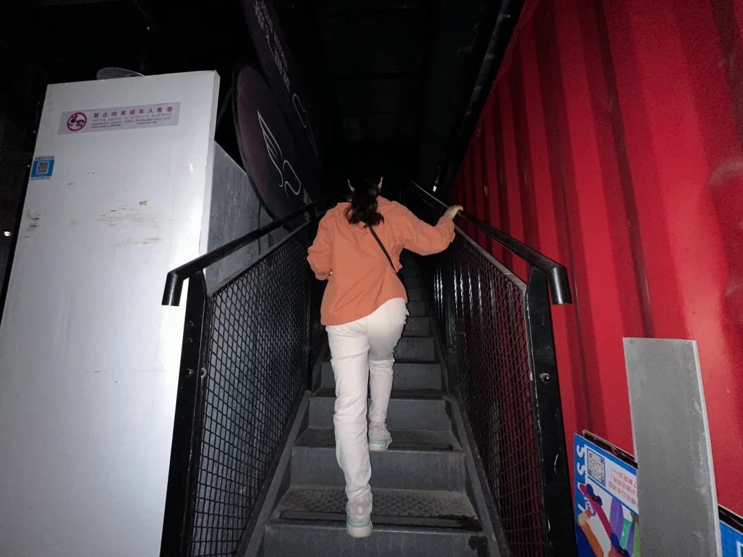 以下组样张可见,iPhone 14 Pro 超广角镜头面对大场景拍摄时,左边的白柜子和右边的红色集装箱光线分布均匀,远处的景物并没有照亮,可见灯源主要集中在前景。