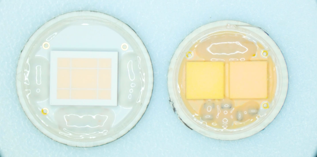 通过 iPhone 14 Pro 和 iPhone 13 Pro LED 闪光灯拆解可见,iPhone 14 Pro 的透镜由左右分布改为同心圆扩散,尺寸也增加一圈,尽可能地利用菲涅尔透镜原理获得更远的发射距离。但要实现不同距离/角度的打光,仅靠灯珠功率和透镜显然不够,所以真正的奥秘在发光片上。