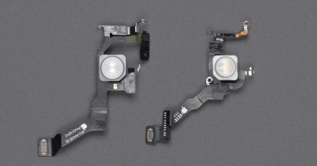 掀开透镜,内部结构一目了然,iPhone 13 Pro 是将灯珠分为冷暖两片,而 iPhone 14 Pro 则将整块灯源切割成不同尺寸,拍摄时依据拍摄物体的焦距调整九个 LED 的组合。并且新的闪光灯在亮度上更高,主摄获得 2 倍提升,超广角 3 倍。