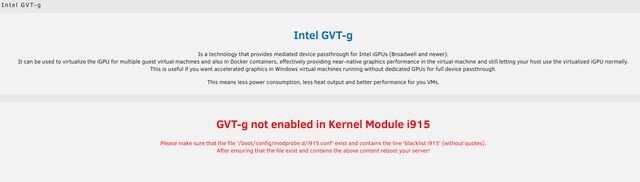 在 UNRAID-应用,搜索 intel-gvt-g 插件,下载安装,这个插件可以将核显直通给虚拟机,是动态分布的,也就是说 UNRAID 本身也还在用这个核显,emby 还能解码。注意这个插件只支持 intel 的 CPU,并且是 5代以上,我正好用的是 QSRL,可以尝试一下。