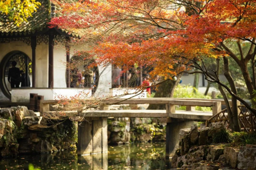 旅行中来到江南水乡苏州,在这里风景迷人别有一番滋味,诗人白居易曾赋诗一首“江南好,风景旧曾谙。日出江花红胜火,春来江水绿如蓝。能不忆江南?”来赞美江南水乡的美丽景色。