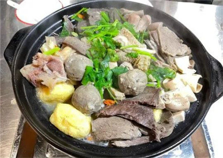 锅是专门的砂锅,炉子是泥炉,满满的一锅真材实料,再配上一碗鲜汤,用炭炉烧煲,能让牛杂在炖煮中更加酥烂入味。