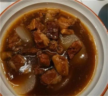 清炖牛腩,牛腩虽然看上去有那么一丁点油脂饱满,但是入口感很惊喜,特别地香滑,一点都不肥腻!牛肉蘸着酱很软烂。