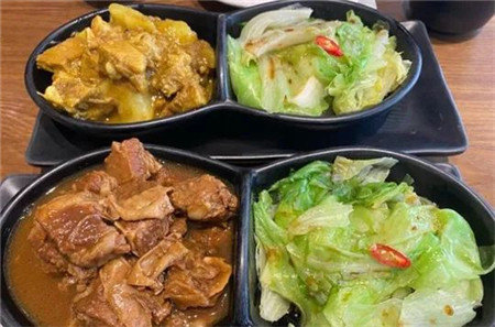 咖喱牛腩、红烧牛腩,牛肉块都不大,炖得入味,搭配米饭刚刚好。