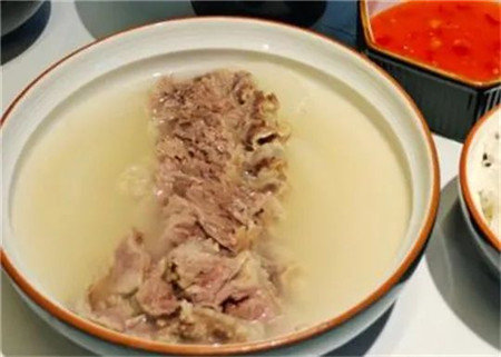 清汤味儿的跷脚牛肉汤底真的很鲜,把汤舀进蘸水里,捞出牛肉蘸上吃,滑嫩嫩的毫无腥气,牛肉的清香味一下子就散开来了。