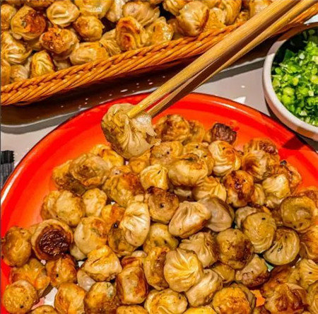拇指生煎包,保留了大生煎的原有特色,外皮比传统薄很多。个头mini可爱,外表脆内馅香软!还有汤汁儿。还有爆浆小豆腐,一小颗一小颗的豆腐,外酥里嫩的。