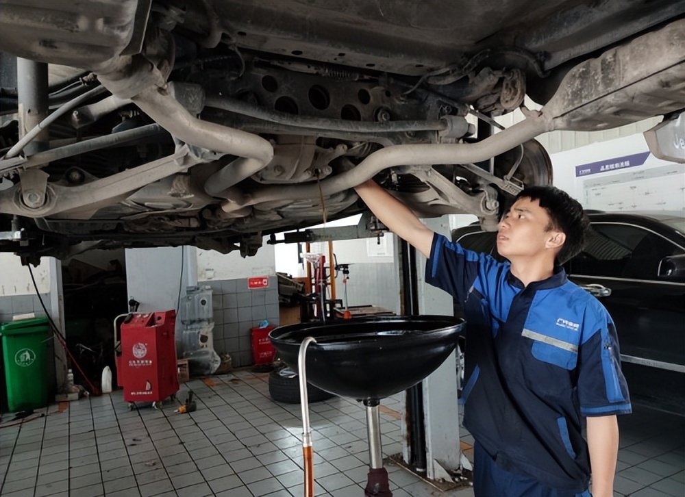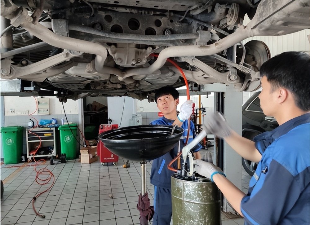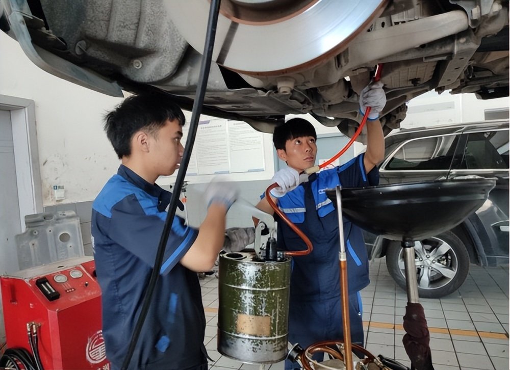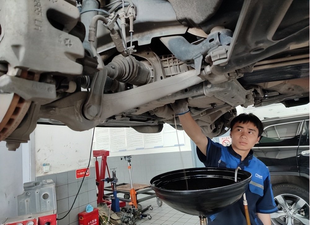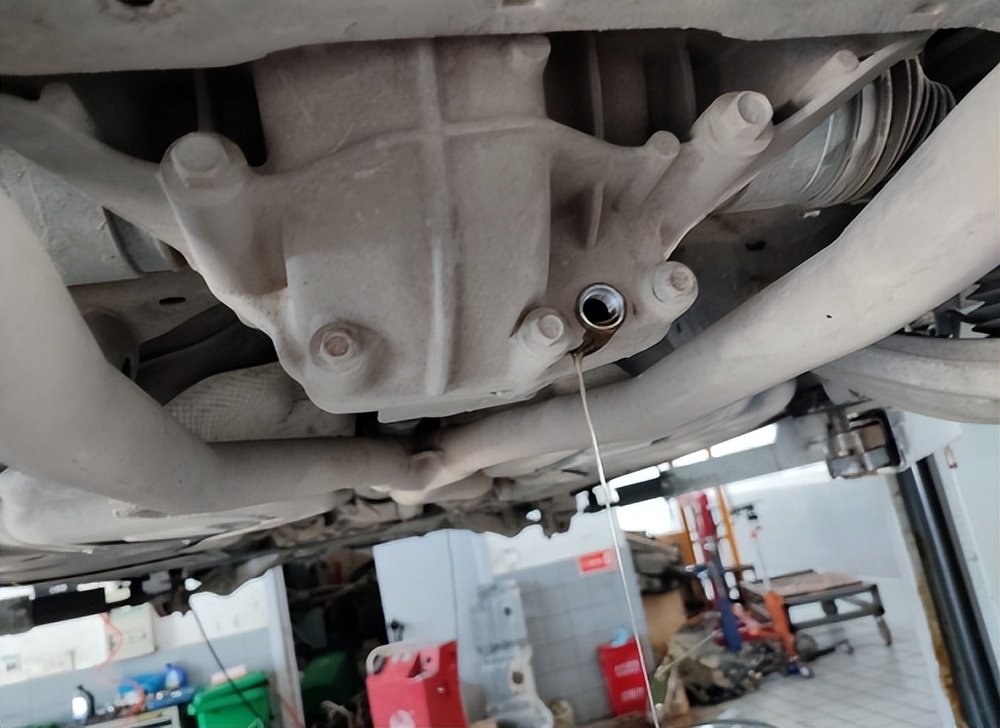 先排出陈旧的后桥油,全程监工,师傅做得还是比较细心