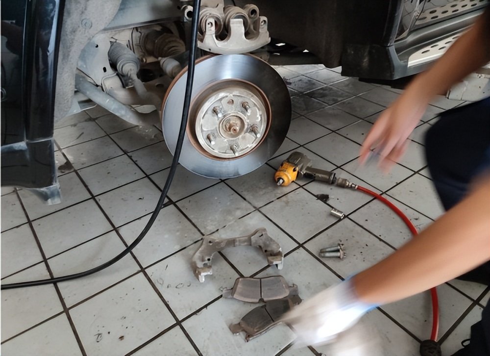 师傅熟练的拆下刹车盘,这一整套看着还是比较夯实