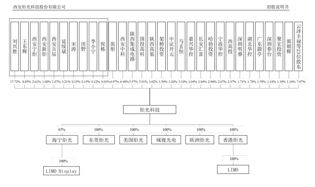 炬光科技在上市之前拥有 6 家全资子公司和 2 家控股子公司,上市后已收购海宁炬光的剩余股权,LIMO和东莞炬光为重要子公司。