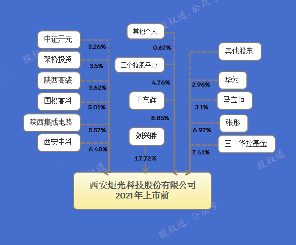炬光科技上市前共有52个股东,包括华为和国资在内的多家机构投资者,但最大的投资者是个人,而且个人股东也占多数。
