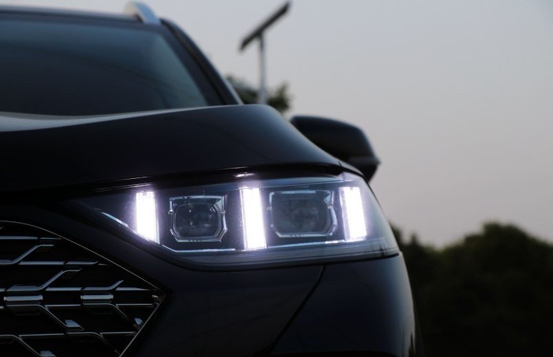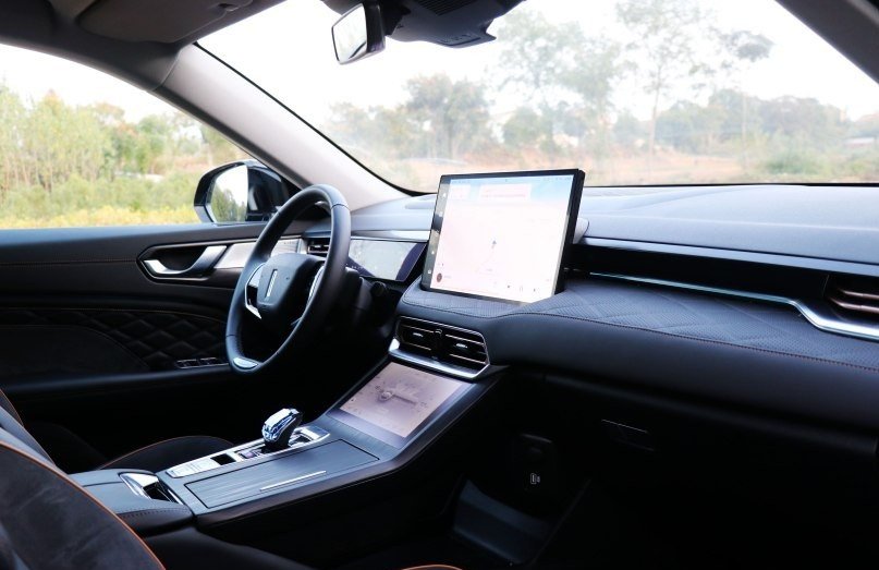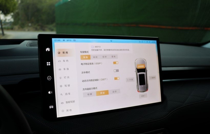 液晶仪表,虽不是很宽,但显示内容很丰富,驾驶时间、剩余电量、油耗/续航里程、辅助功能的开启关闭提醒等等,一目了然。上方有一个大尺寸的抬头显示,行驶时常用信息都会显示在上面,无论晴雨都很清晰,开车基本不用低头看仪表,行车更安全。