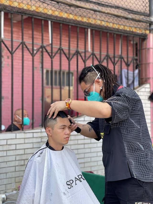 在广州市穗星社会工作服务中心副总干事马文锦的组织下,11月19、20号这两天,12位发型师进入刚解封的客村。空旷的客村体育场,成了临时的美发店。上百名社区防疫工作者笑容满面地接受各位TONY老师的服务。一缕缕碎发顺着剪刀飘落而下,仿佛对“战疫”时光的一种告别。这并不是简单地进行形象上的改变,而是意味着“抗疫”的转折,恢复正常生活的起点。