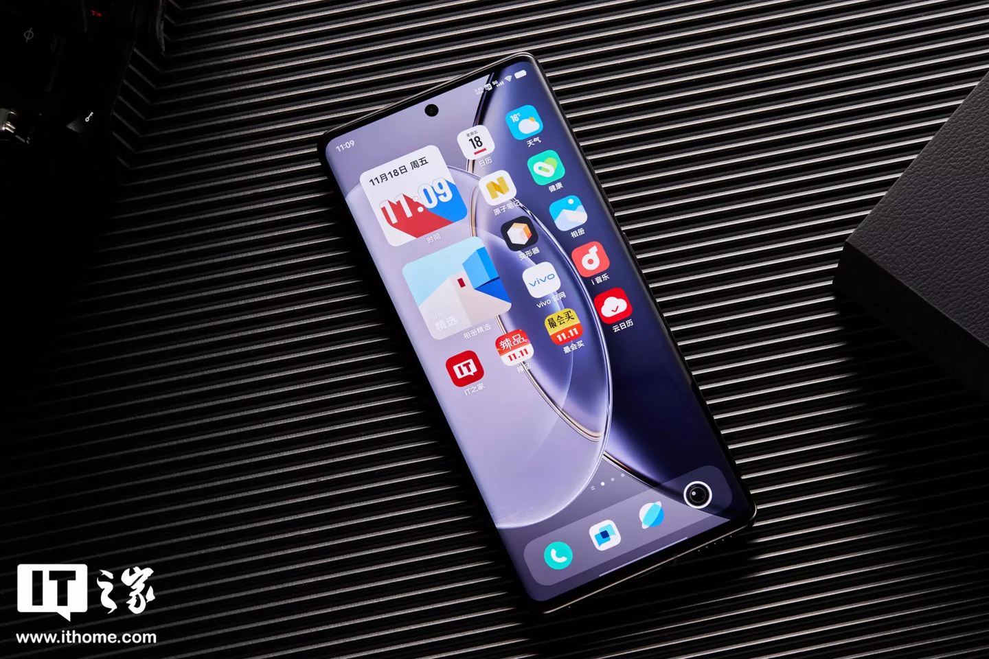 首先是配色上,vivo X90 带来了华夏红、至黑,冰蓝三款配色,IT之家拿到的是至黑版本,在设计工艺上,“至黑”采用了萤石 AG 工艺,尽管是并不跳跃的黑色,但依旧充满了视觉冲击力,在光线下,黑色机身甚至会闪烁着点点星光,纯黑色的玻璃也变得精致耀眼起来,璀璨中还带着几分克制。