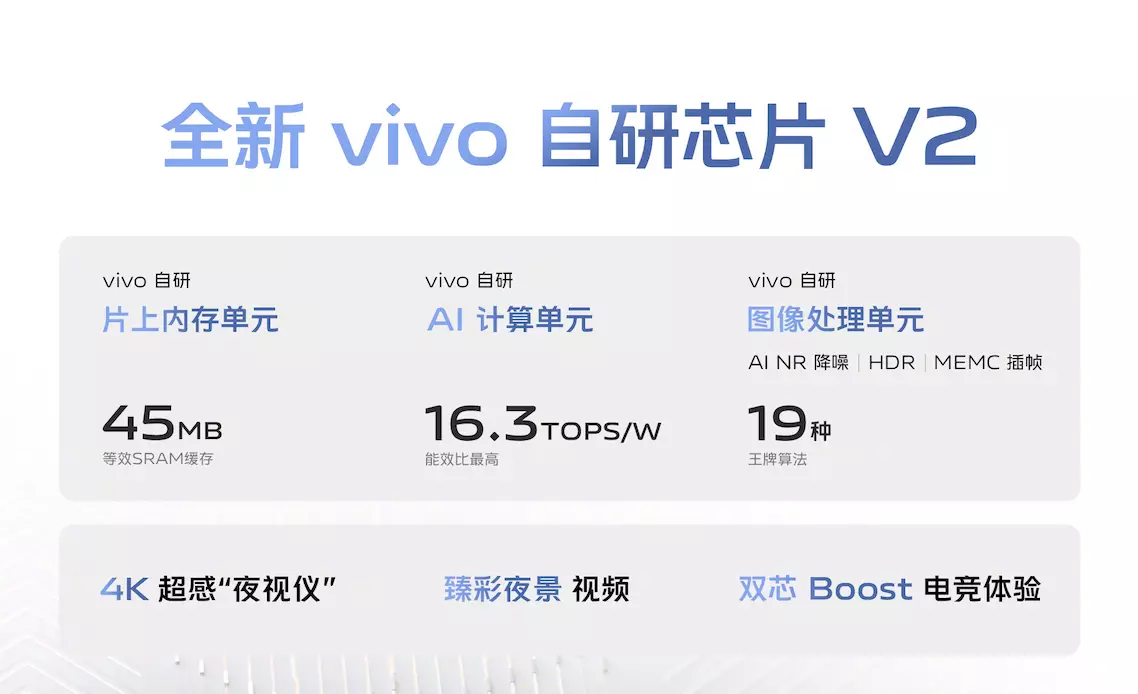 全新登场的vivo X90 Pro+,搭载了vivo最新自研芯片V2。通过对芯片架构的重构,V2的算力获得了大幅度提升。在这颗新一代自研芯的帮助下,vivo X90 Pro+不仅获得了更出色的降噪、逆光优化等影像增益,同时还提升着游戏运行时的体验。