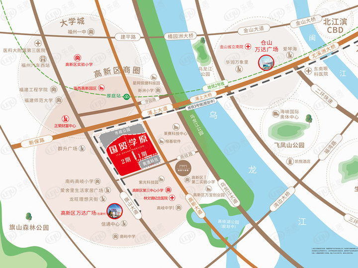 国贸学原二期位于闽侯高新区浦上大桥南侧,坐享城市发展利好。毗邻浦上大桥、旗山大道、高新区大道等城市主干道。