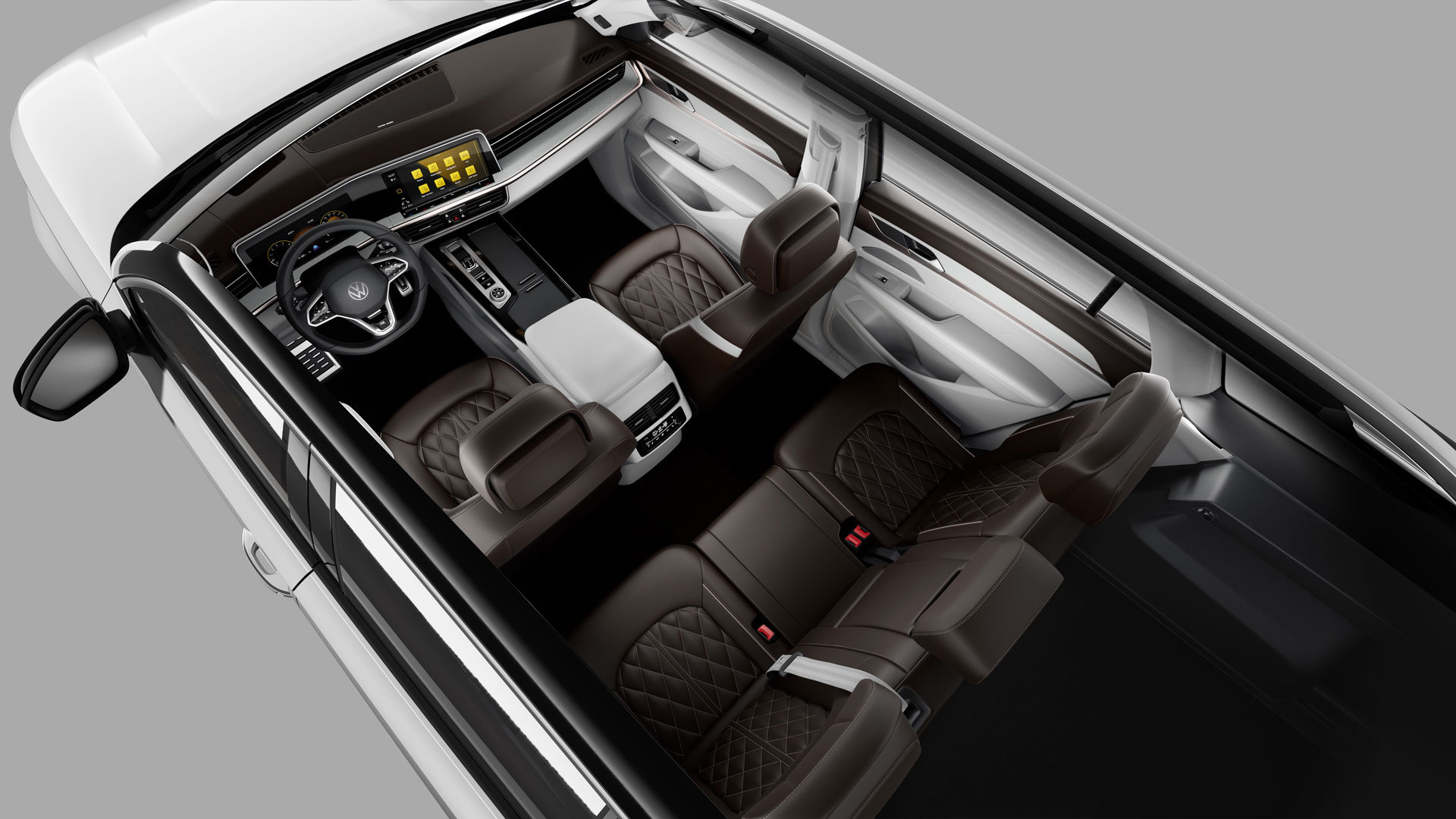 外观方面,一汽-大众 揽巡前脸以“牛”为设计灵感,采用横向线条设计,告别了传统的大众家族式前格栅设计,奔牛式的双前脸布局配合侧面较短的前后悬和较长的引擎盖,在视觉上尽显大气和稳重。车身侧面线条让整车更有肌肉感。D柱悬浮式车顶造型,侧面看也充满时尚气息。