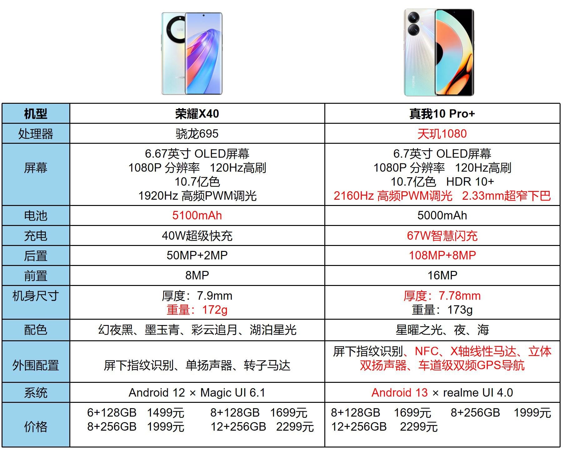 因此,今天我们就来对比中端价位的两款手机,它们分别是荣耀 X40和真我10 Pro+。其中真我10 Pro+是11月17号才发布的新手机,被许多用户所关注。下面我们来看一下这两台手机的配置情况。
