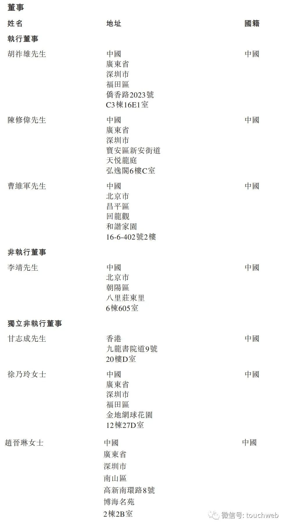 凌雄科技的执行董事分别为胡祚雄、陈修伟、曹维军;非执行董事为李靖,独立非执行董事分别为甘志成、徐乃玲女士、赵晋琳女士。