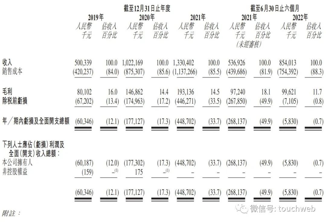 凌雄科技2022年上半年营收为8.54亿元,上年同期的营收为5.37亿元;毛利为9962万元,上年同期的毛利为9724万元;期内亏损为583万元,上年同期的期内亏损为2.68亿元。