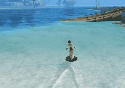 让人觉得很惊喜的另外一点就是,还支持多种地貌。在不同地貌上进行滑行时,还会产生不同的滑行轨迹。在新地图龙门荒漠中使用滑行,就会扬起黄沙,留下轨迹。在南宫山的冰面上滑行,十分丝滑,会有一种滑冰的错觉。而在鼓浪屿的浅水中滑行,则会溅起水花,产生一阵阵涟漪。可以说体验绝佳!