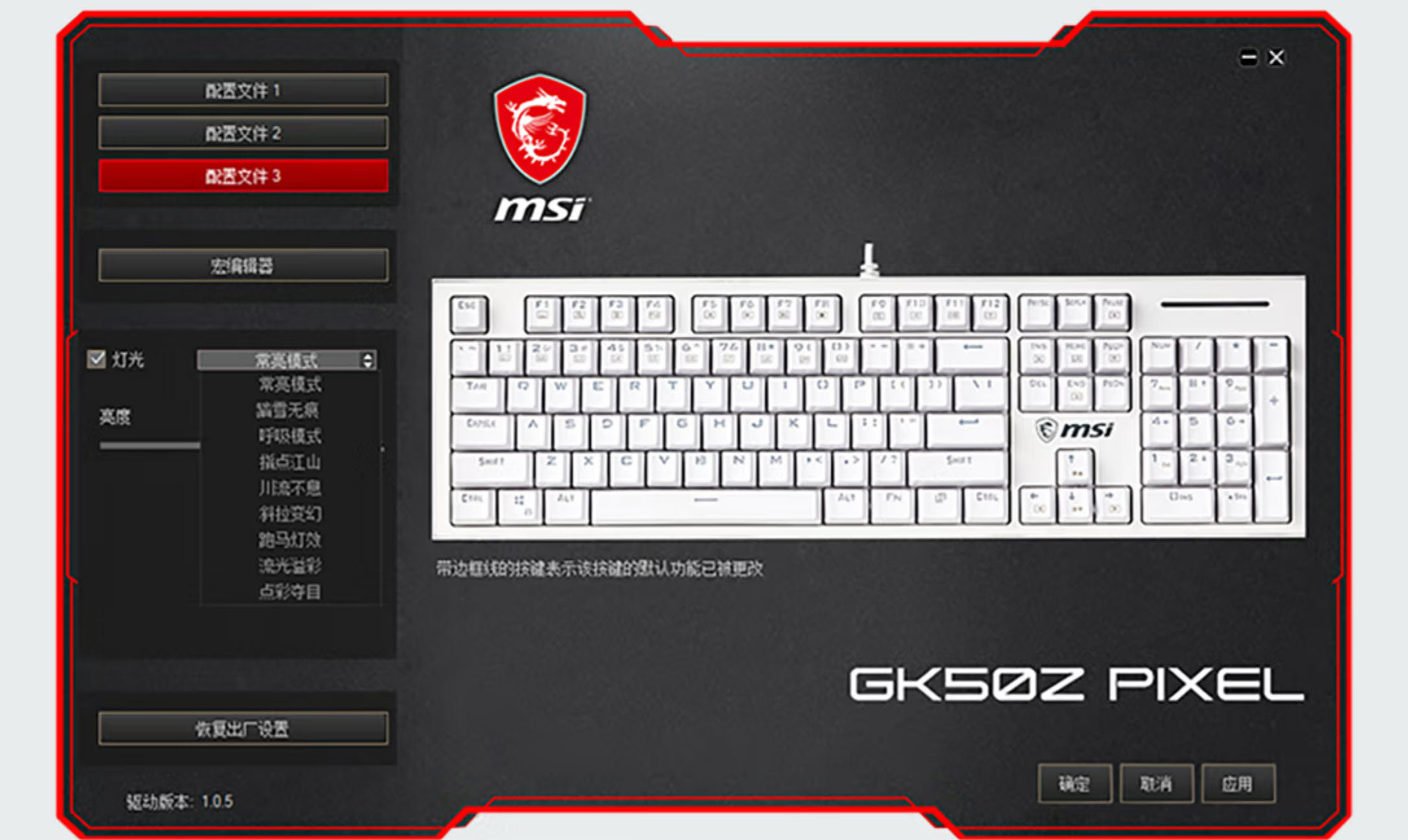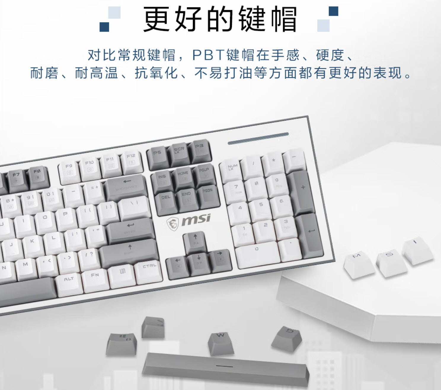 ARGB灯效贯彻在每个灯珠上,而且配合FN组合键不但能灵活调出各种灯效组合、功能键组合、灯模式组合。而且还能配合微星开发的外设控制软件使用