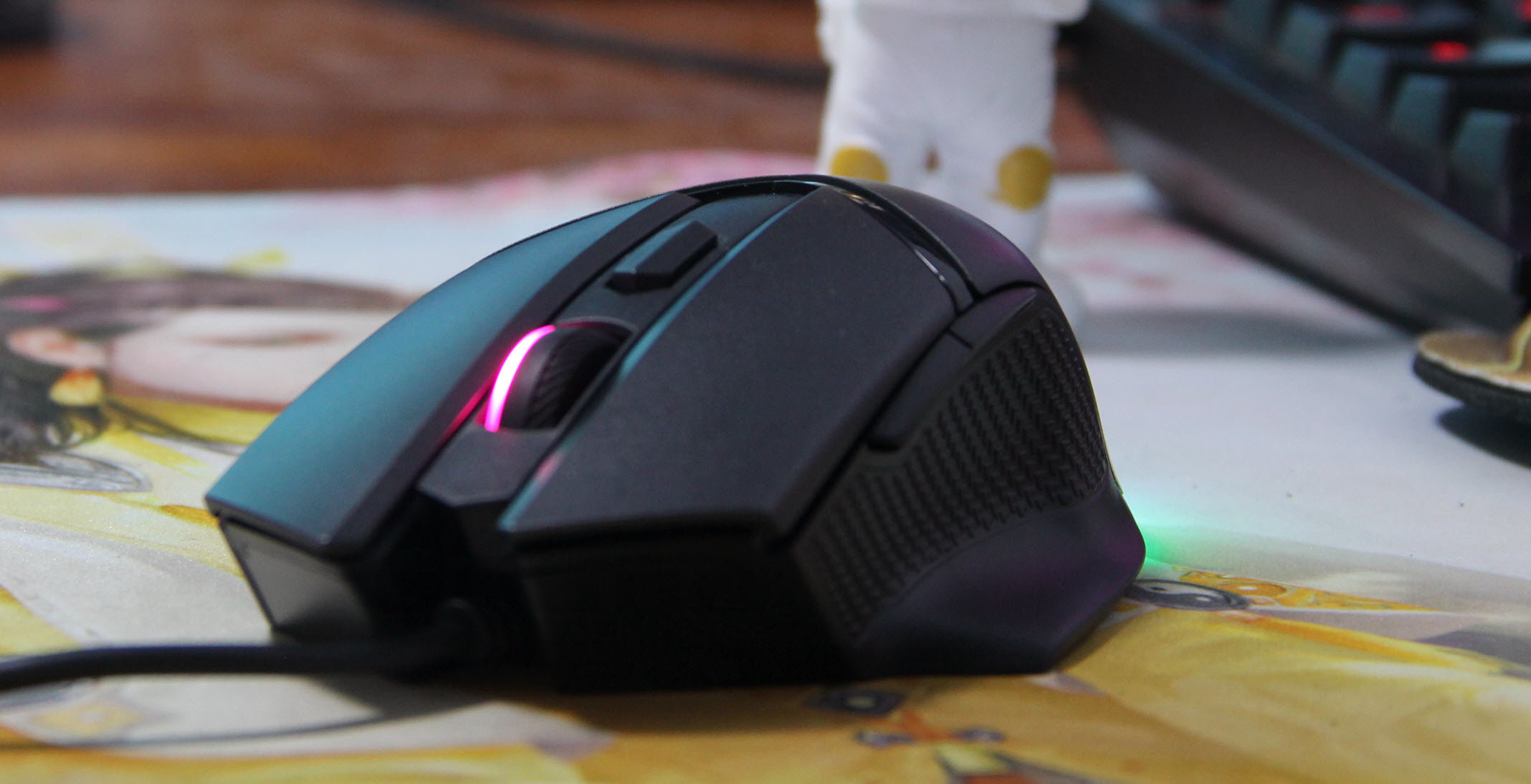 GM20 ELITE相比前作不但继承了高性能、高手感之外还继承了大灯光区块设计,分别是滚轮灯、龙徽LOGO及尾部灯带,三块灯光区域均支持ARGB背光,这小精灵的综合表现完美。