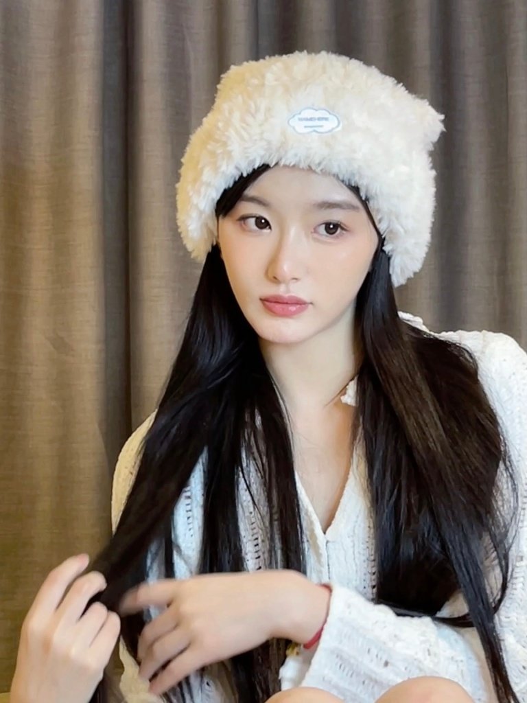 孔雪儿发布毛绒帽造型随拍 戴发箍甜美减龄似少女