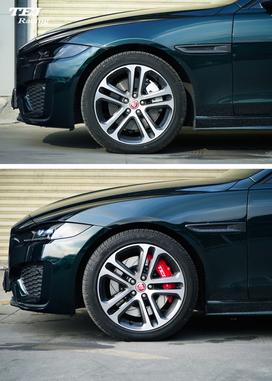 本期分享一辆捷豹XEL改装TEI Racing刹车案例。作为改装圈并不多见的车型,捷豹XEL车主觉得原厂的刹车脚感不够线性,因为原厂刹车是单活塞浮动式卡钳;所以,车主为了爱车更加个性,追求更好的制动力和脚感特地过来找我们升级刹车。