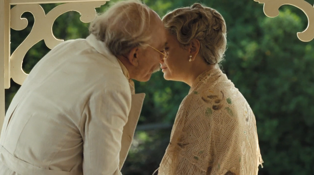 一个七十七岁的垂垂老者,终于得到了他的初恋情人,她已经七十三岁,两个人浑身散发着老人特有的酸味,带着这个年龄段的肌体毛病,肚子咕咕叫,一不小心,就能够出现遗矢尴尬,女方瘦骨嶙峋,形容枯槁,这样的一对男女,还能激发出爱情,甚至是肉体的激情么?
