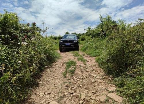 马上驶入这个坎,这应该是下暴雨冲刷后留下的,沟比较深,但是和我空气悬挂底盘三级升高来讲,如履平地