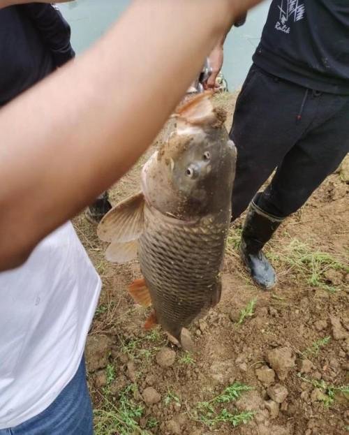 周边的钓友过来帮忙提鲤鱼上岸,这么快就上大鲤鱼了,运气真是好,20元钓费还是花得值,看来抖音还是没骗人,这几天鱼还是好钓